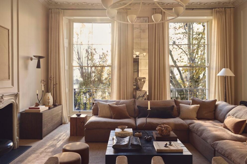 Ciepłe Neutralne: Brąz staje się nowym neutralnym kolorem, wprowadzając ciepło do wnętrz.
