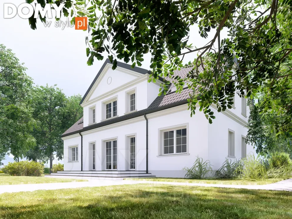 2. Elewacja w kolorach złamanej bieli ozdobiona gzymsami, ganek z kolumnami lub portykiem, należy jednak pamiętać, że elegancja nie znosi kiczu., więc styl kolumn powinien być prosty i nie nawiązywać do starożytnego Rzymu. Niestety w okolicach Białegostoku widać wiele domów jednorodzinnych, gdzie źle dobrane detale architektoniczne psują ogólny wizerunek domu, zamiast wyrafinowania efekt jest komiczny.